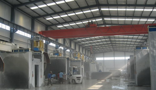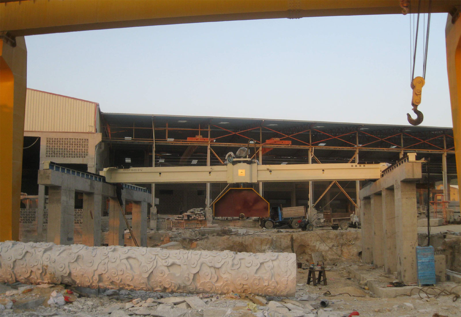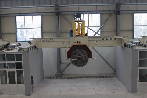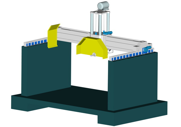 本機采用大跨度橫梁結(jié)構(gòu), 整體機身重; 橫梁導(dǎo)軌采用進口線性軌道; 機身升降結(jié)構(gòu)采用四立柱式液壓升降, 同時采用專有技術(shù): 立柱及邊梁,在切割時有液壓鎖緊裝置,確保切割時整體機身不晃動, 切割效率好, 板材平整度高, 是切割大規(guī)格高價值進口大荒料的理想設(shè)備. 1: 機身采用專有技術(shù)"液壓鎖緊裝置",在機械有磨損或切割過程中可減小機身間隙,有利于提高板材的平整度和延長刀頭使用壽命 (*選配 Alternative)。